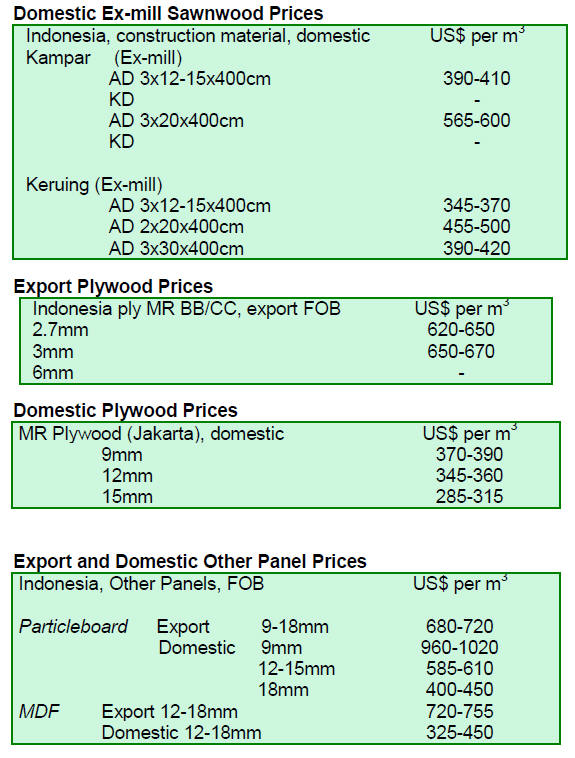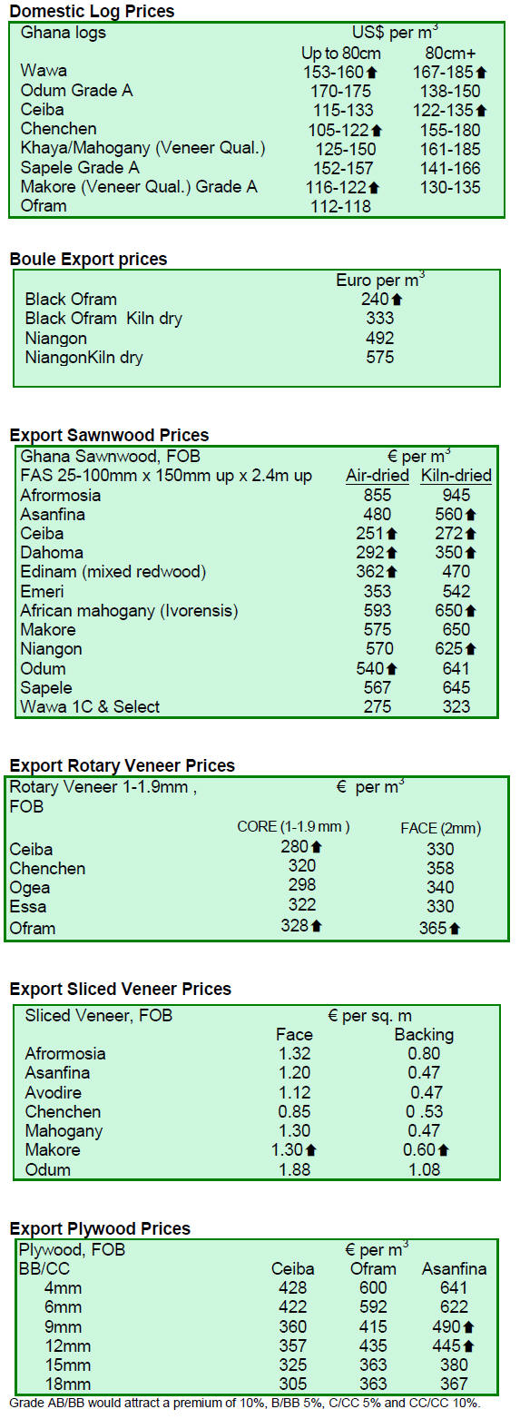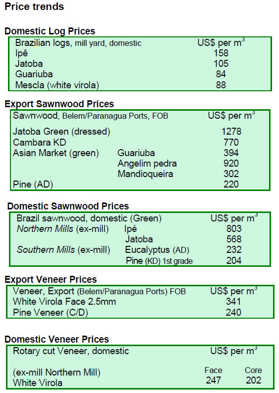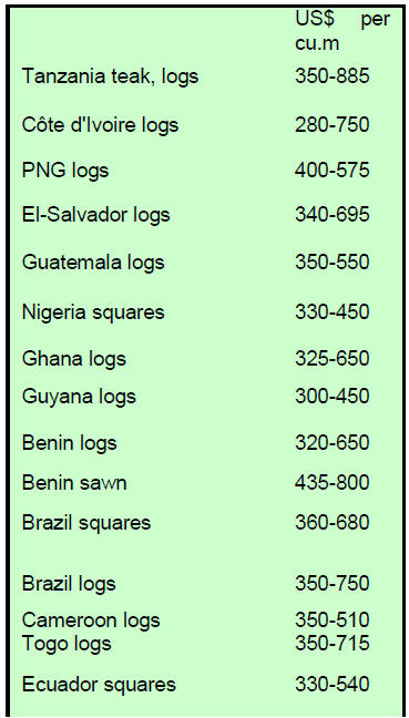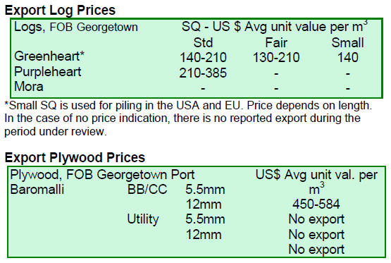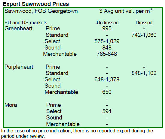 Undressed sawn greenheart prices were favourable with a