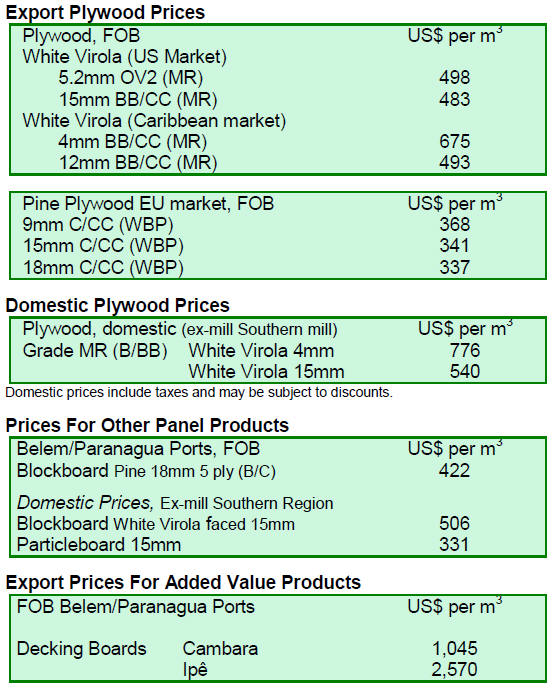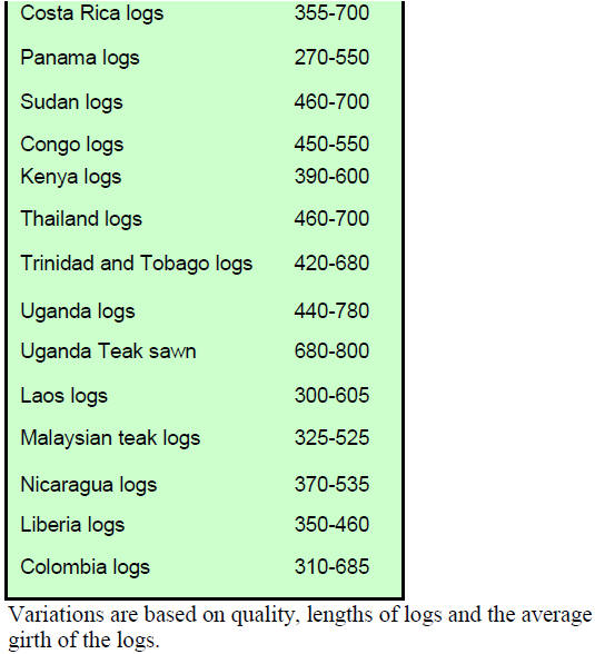 US$160 per cubic metre FOB; shibadan (Aspidosperma