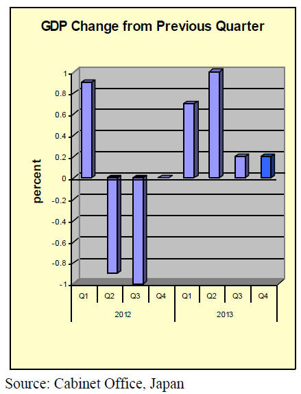 Japan's economy grew by 0.7% in 2013, down from an