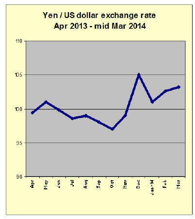 In early March the yen strengthened against the US dollar