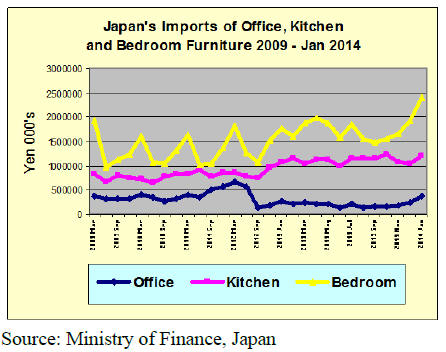 Japan‟s office kitchen and bedroom furniture imports from