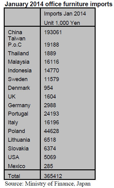 January 2014 office furniture imports into Japan were
