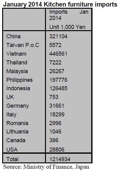 Imports of kitchen furniture in January 2014 were one of