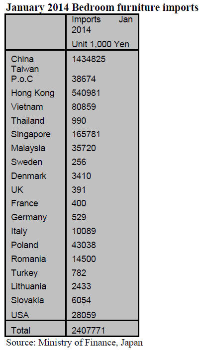 89.5% of Japan‟s January 2014 imports of bedroom