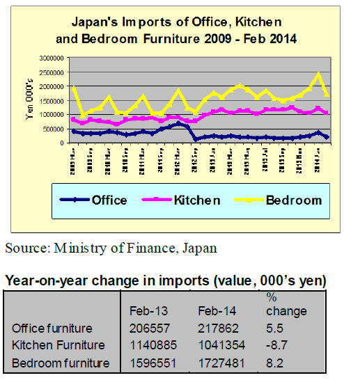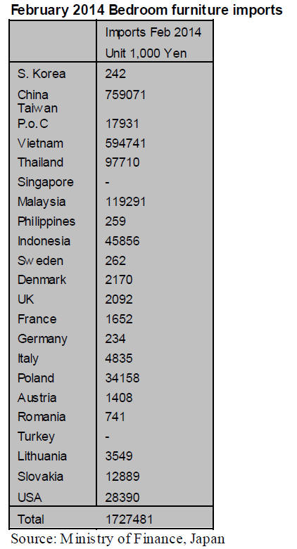 Japan‘s bedroom furniture imports increased throughout