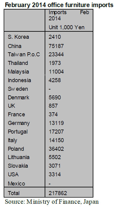 office furniture imports in February 2014.