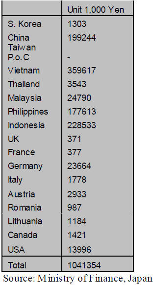 kitchen furniture imports by Japan and remain Vietnam,