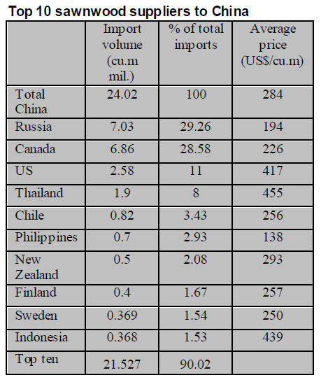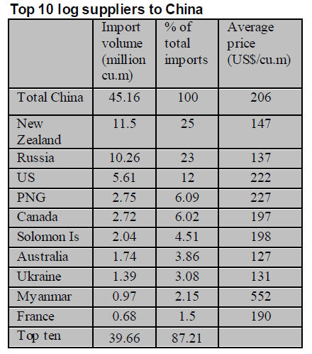 Russia as the main log supplier to China.