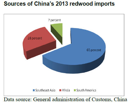 China‟s imports of sawn redwoods totalled 98,200 cubic