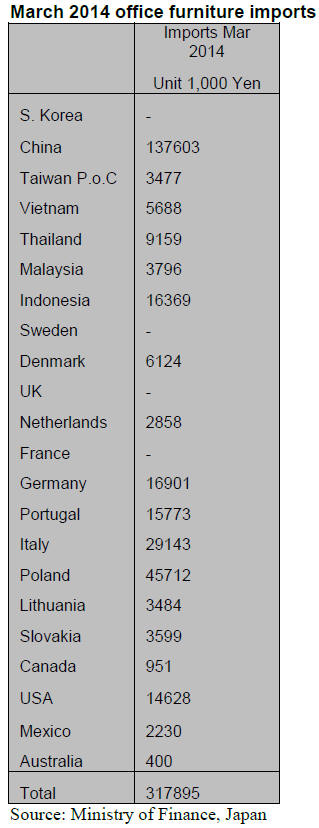 March 2014 imports of office furniture into Japan rose