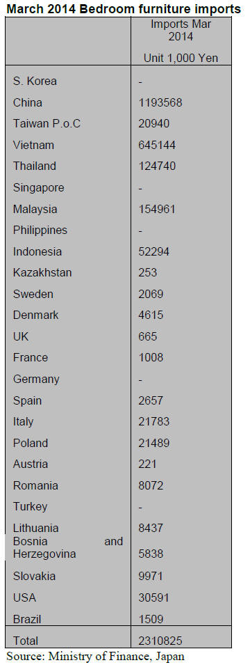 Japan‟s bedroom furniture imports increased throughout