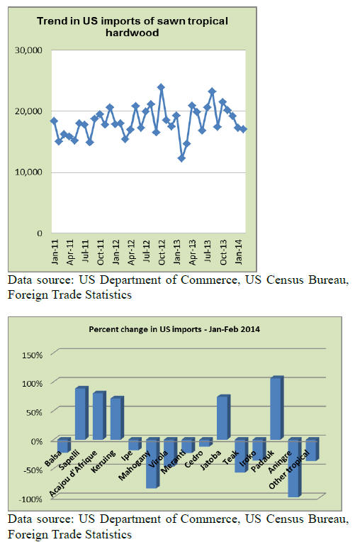 US sawn hardwood imports in February expanded to