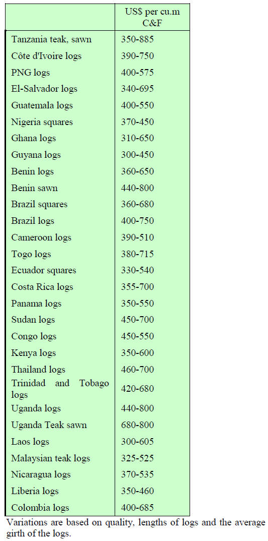 US$566 per cubic metre to US$768 per cubic metre exmill
