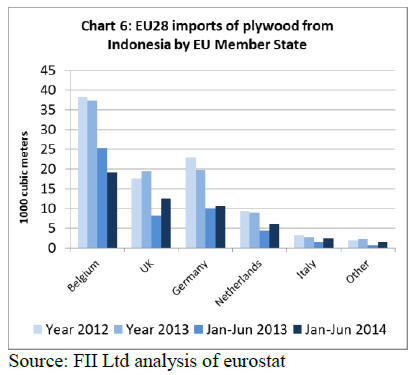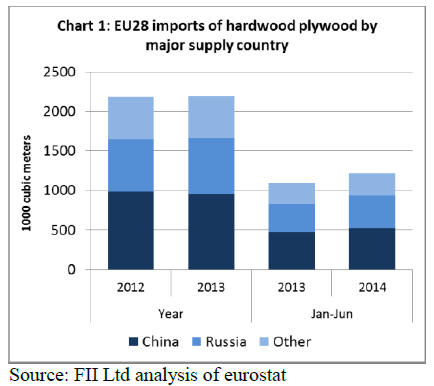 In the first six months of 2014, EU28 imports of hardwood