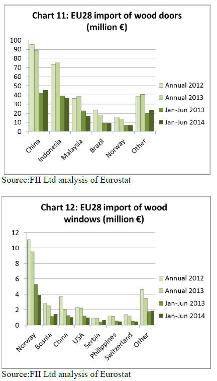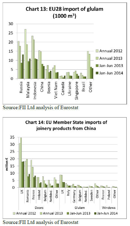 Chart 14 summarises EU imports of joinery products from