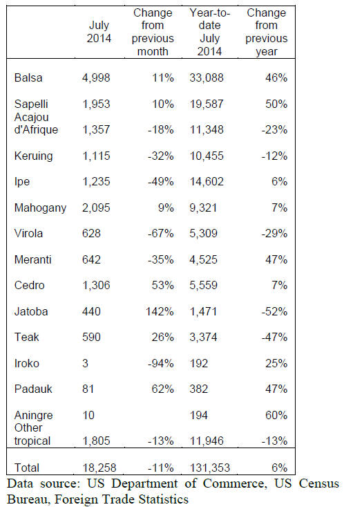 27% to 1,032 cu.m in July. Overall sawnwood imports