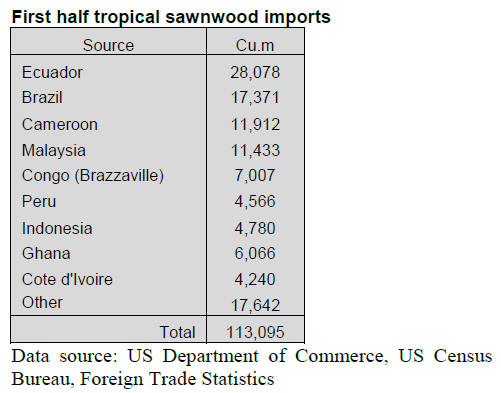 Cameroon shipped 1,349 cu.m of sawnwood to the US in