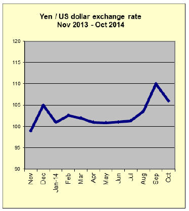 From a high of yen 106 to the US dollar in early October