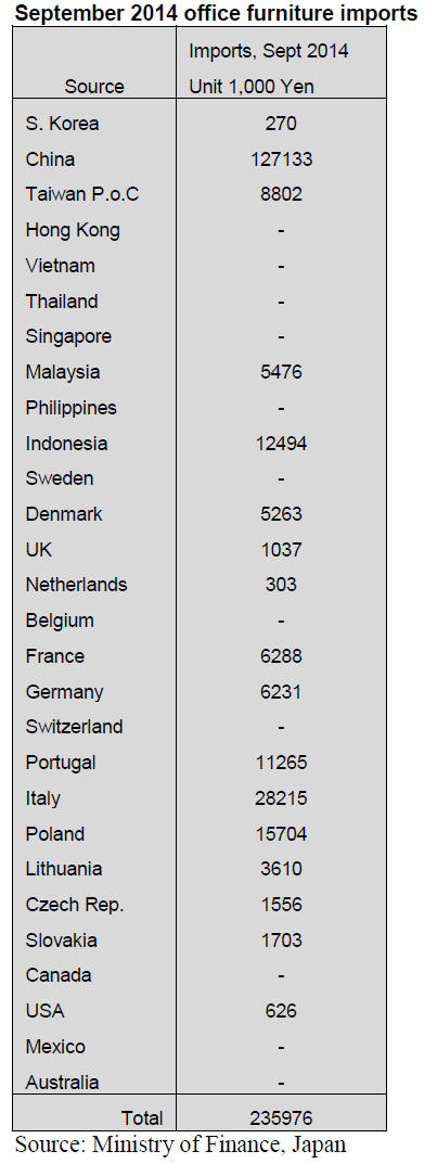 Japan‟s office, kitchen and bedroom furniture imports