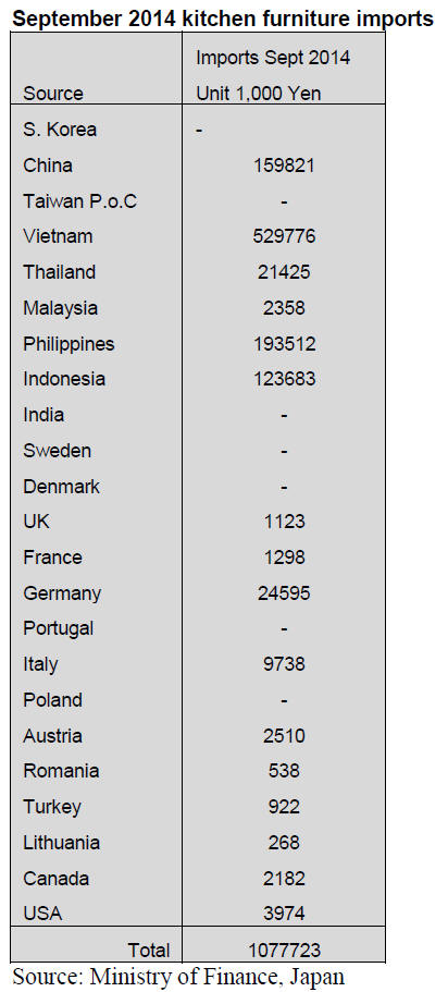 Overall, kitchen furniture imports by Japan fell by 3% in