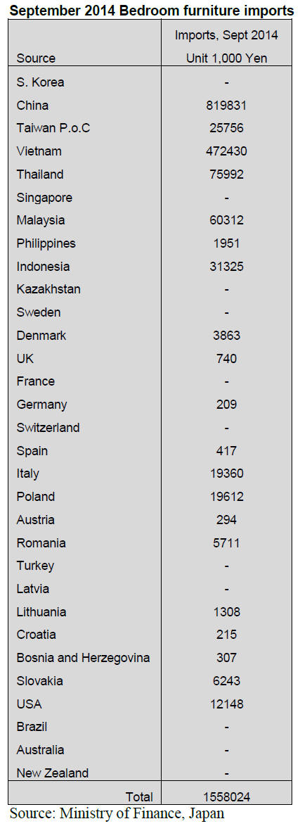 Japan‟s imports of bedroom furniture continued to fall in