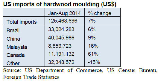 hardwood moulding shipments to the US in August.