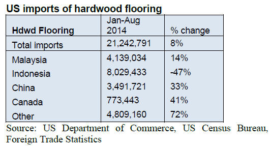 In 2013, hardwood flooring imports were worth US$219