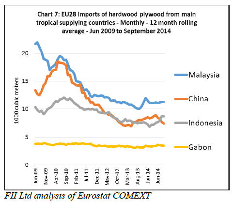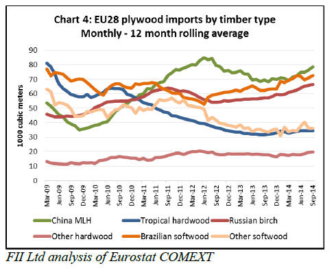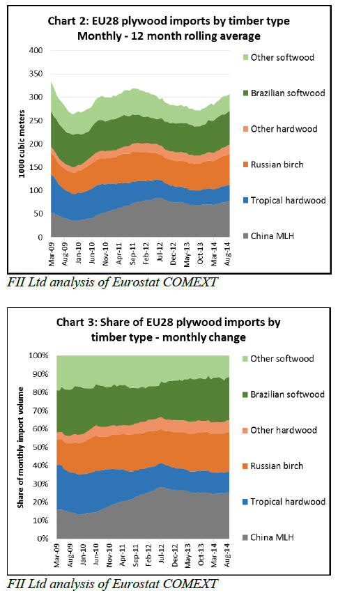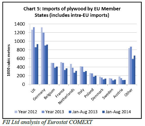 2012, imports remained stable at 3.38 million m3 in 2013.