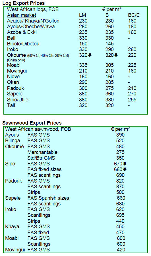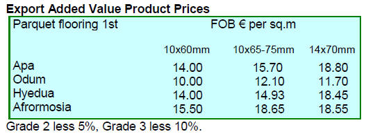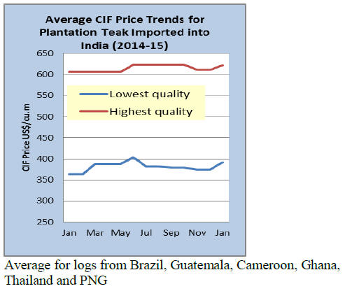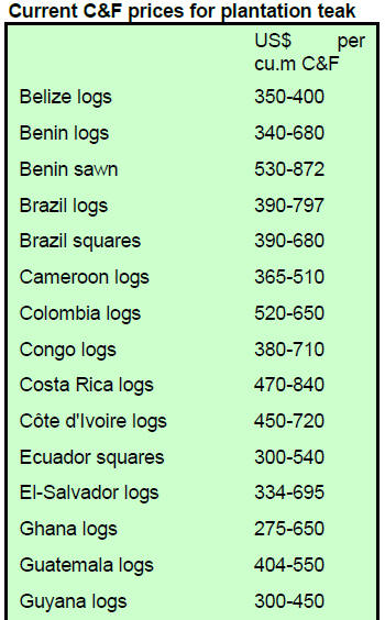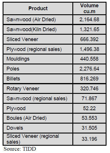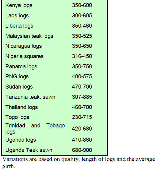 The leading export species for the period were teak,