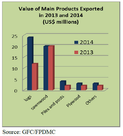 In 2014, dressed and undressed sawnwood exports
