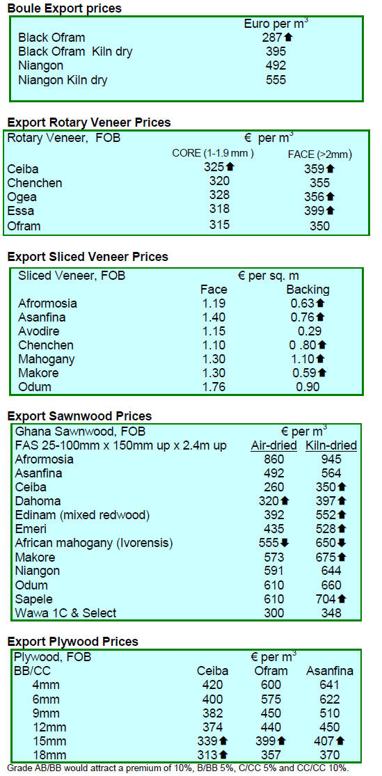 Ghana produced and exported a total of 286,416 cu.m of