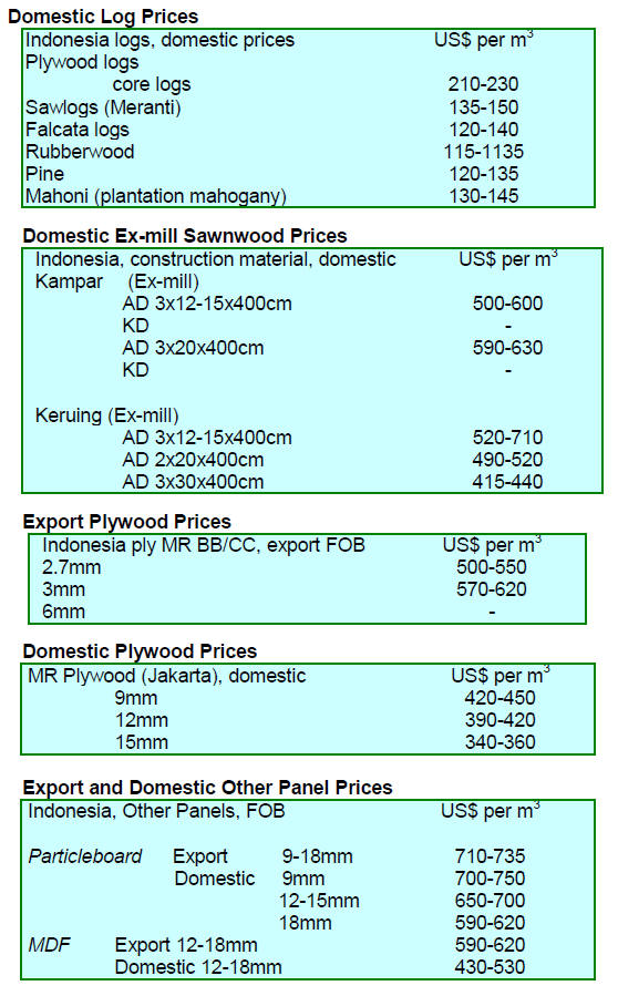 Sarawak plywood export prices