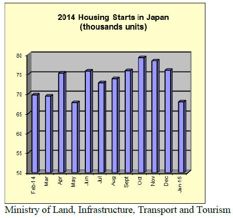 January housing starts totaled 68,000 units, down from the