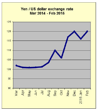 The yen strengthened slightly towards the end of February