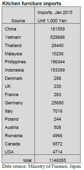 In contrast kitchen furniture imports in Janauary 2015