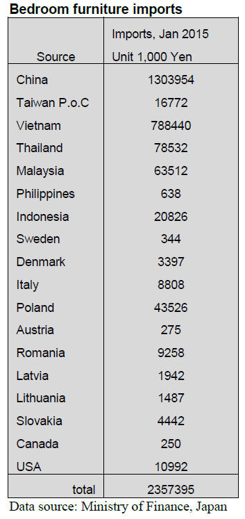 bedroom furniture imports in January 2015. Of the five SE