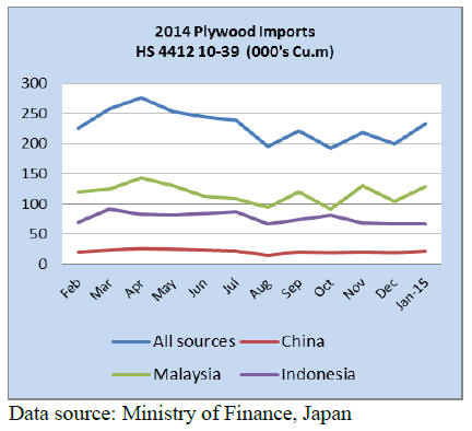 was 2,523,400 cbms, 5.6% less. Import plywood market