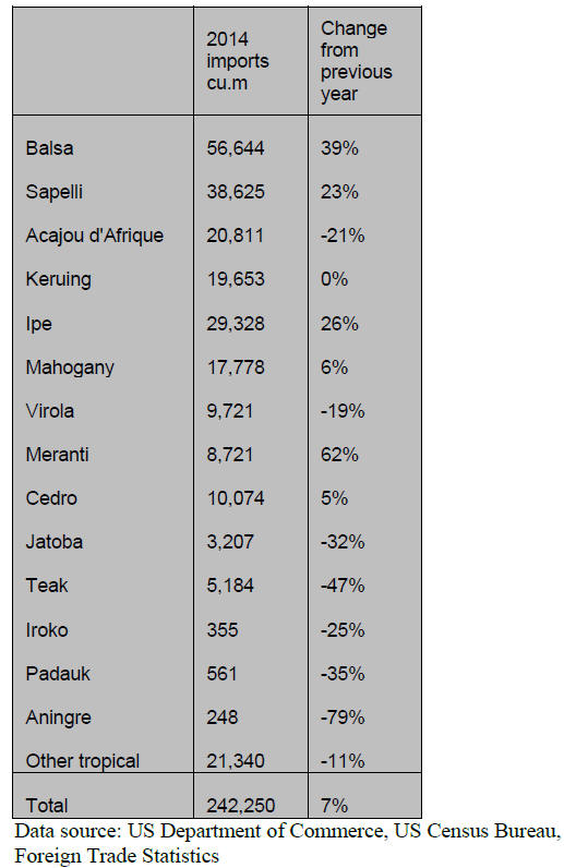 US imports of balsa, sapelli and ipe up in 2014