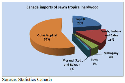 Canada‟s largest source of tropical sawnwood in 2014.