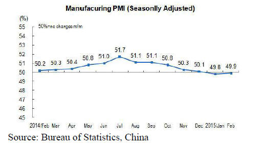 In February China's manufacturing purchasing managers