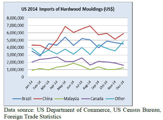 Hardwood moulding imports from Brazil grew by 14% to
