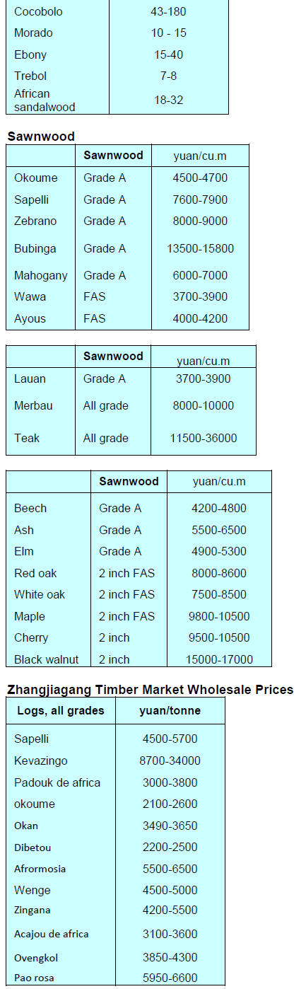 plywood was US$410 per cubic meter.