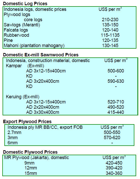 Air and kiln dried sawnwood, poles, plywood (for the
