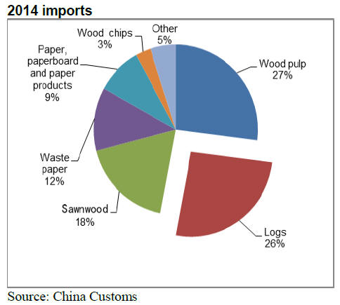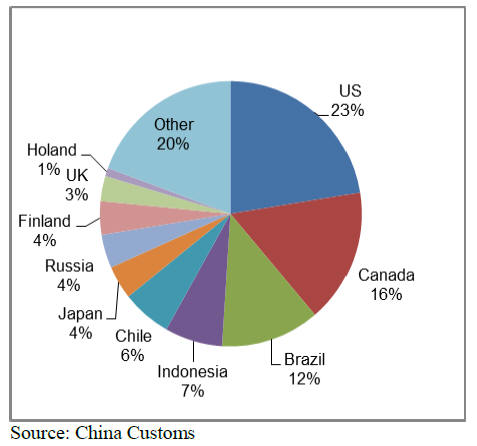 in 2014. Wood pulp imports were 17.96 million tonnes