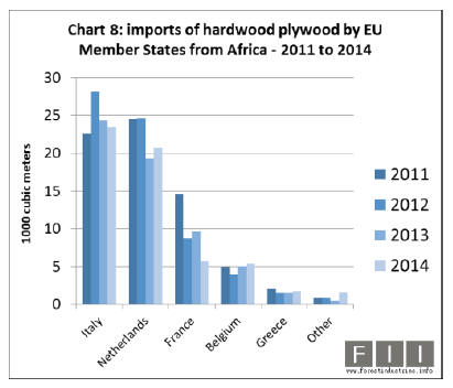 minor (Chart 2). EU28 imports of hardwood plywood