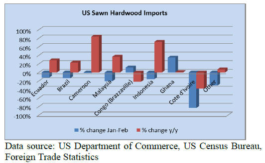 February sawn hardwood imports more than doubled from