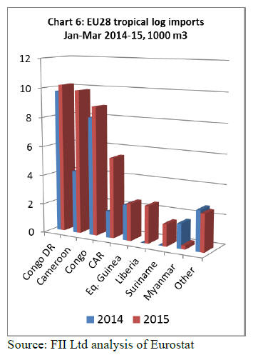 Most imports of logs from Cameroon and the Congo