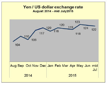 in early July the yen rose to 120 to the US dollar the