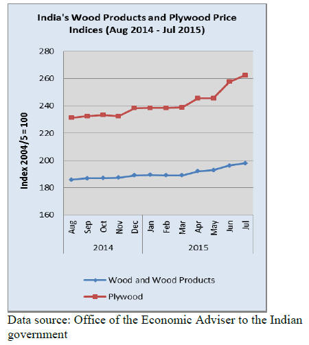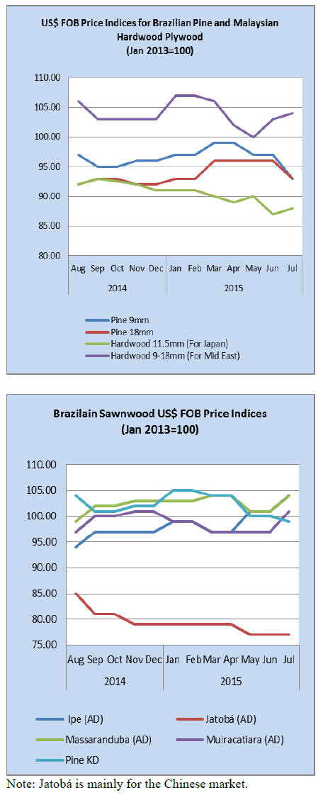 Pine plywood exports in July 2015 were destined mainly