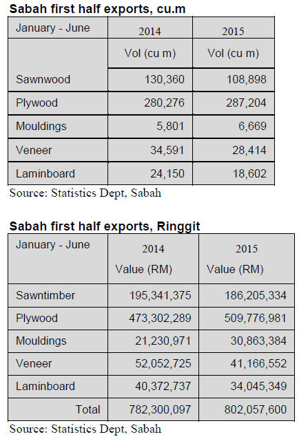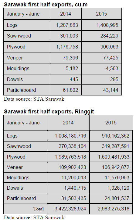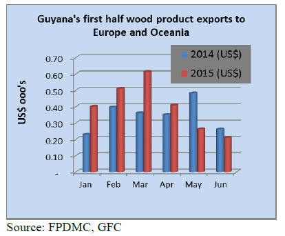 (GFC), first half 2015 exports of wood products totalled